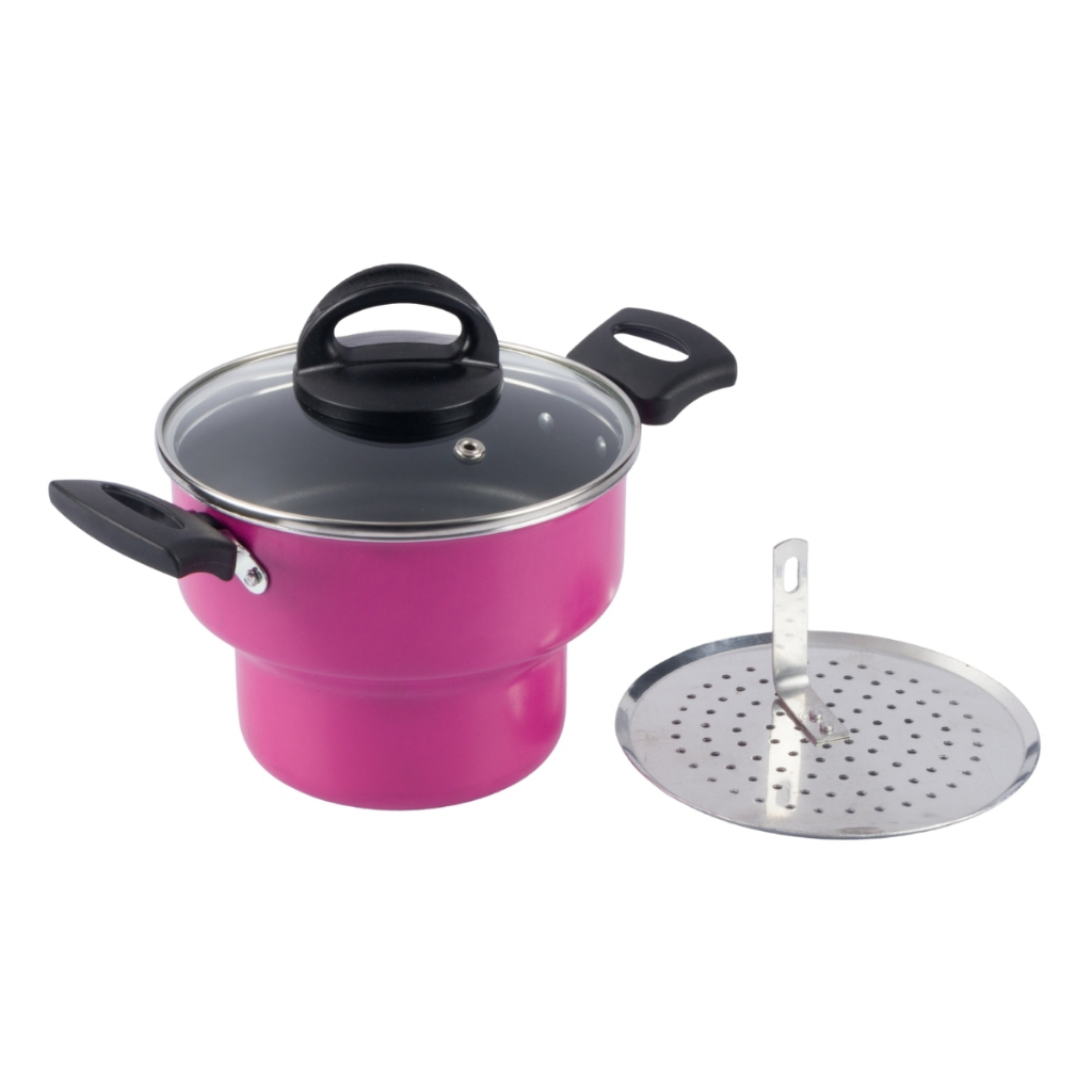 Cuscuzeira Antiaderente Tampa Vidro 16Cm Rosa Nacional