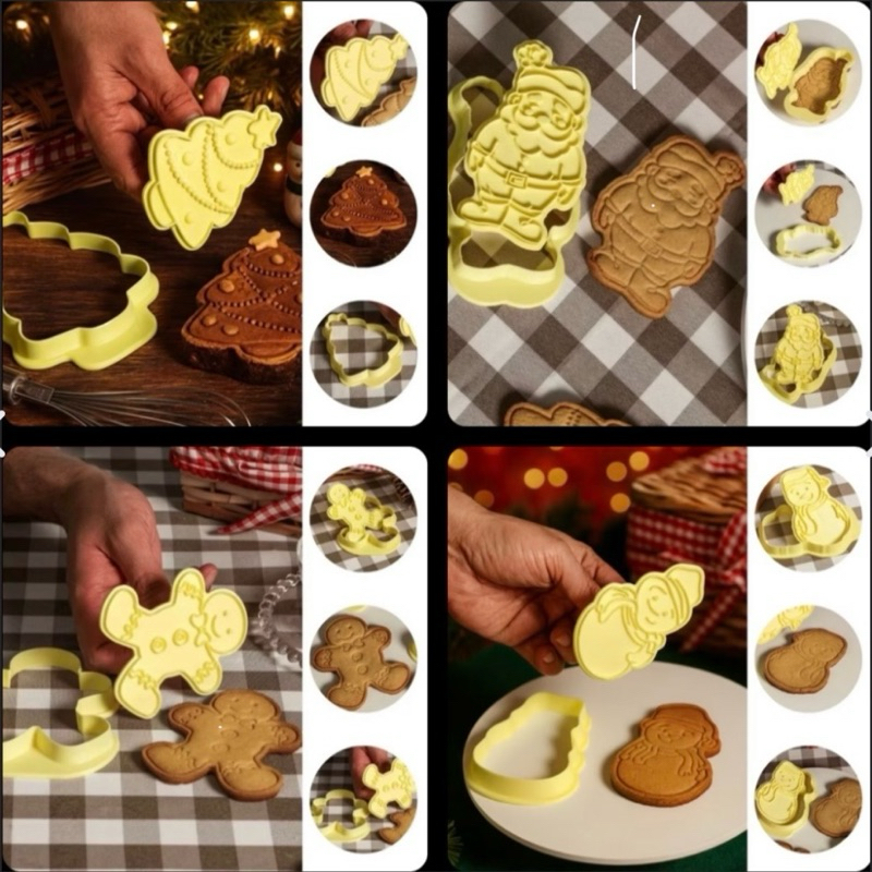 KIT Cortadores com Carimbos de Natal BlueStar p/ Marcar Biscoito Massas Pasta Americana Off