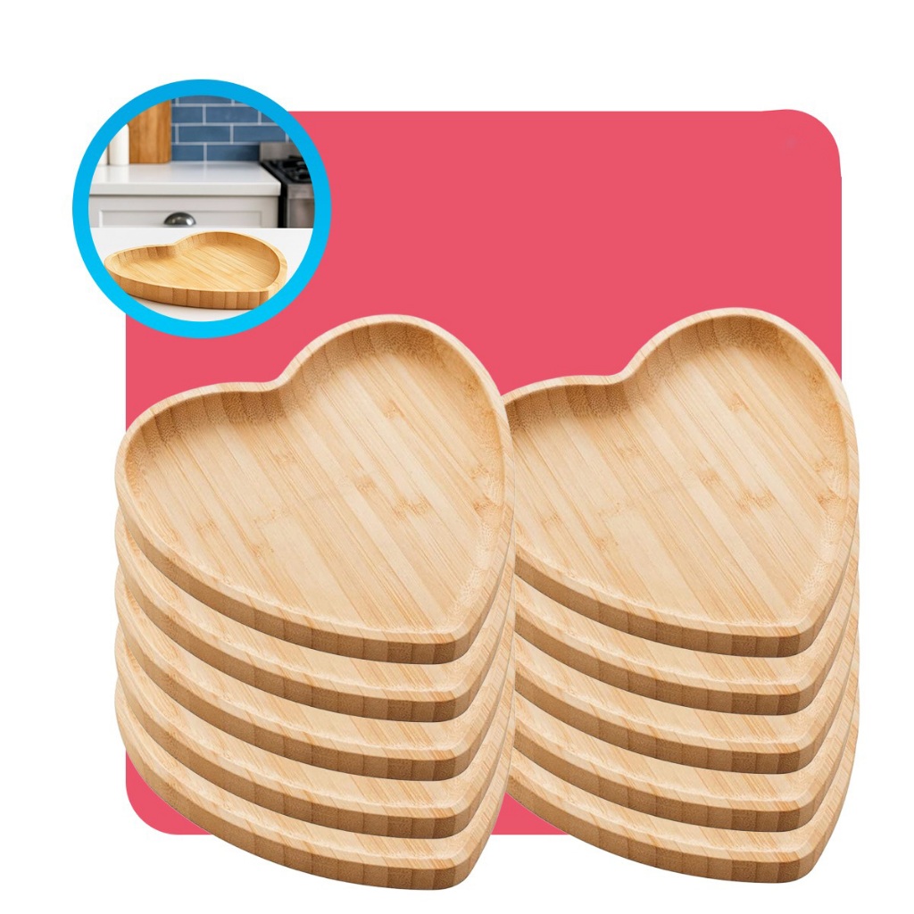 Bandeja Travessa De Bambu Coração Heart 17cm Decorativa Petiscos Mesa Café Mesa Posta Lyor