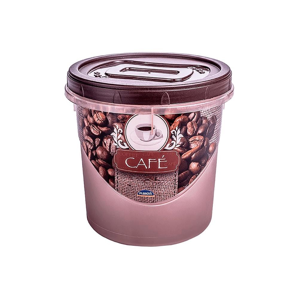 Pote Redondo Plástico Plasútil Café 1,8L, com Tampa Rosca, Marrom - 6399 em Oferta na Shopee Shopee