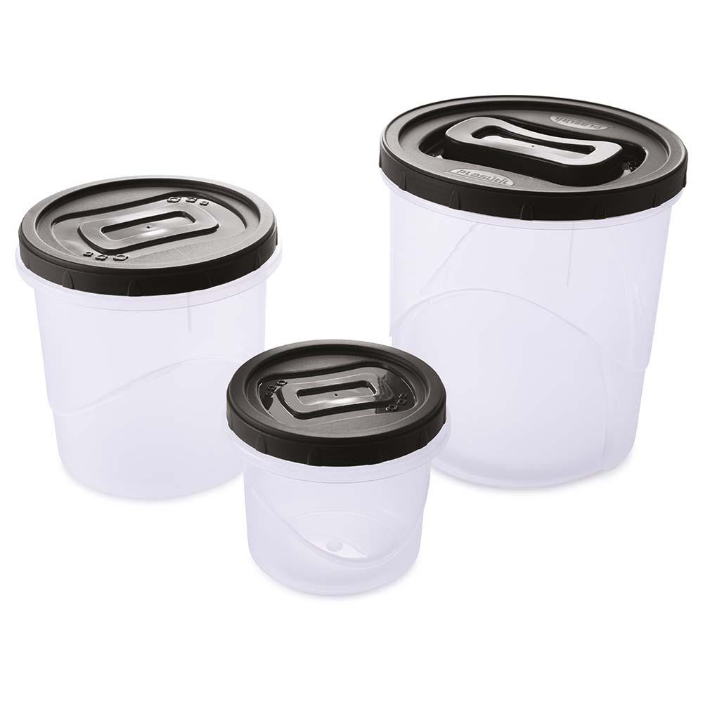 Kit 3 Potes Porta Mantimentos Redondos Preto Plasútil em Oferta na Shopee Shopee