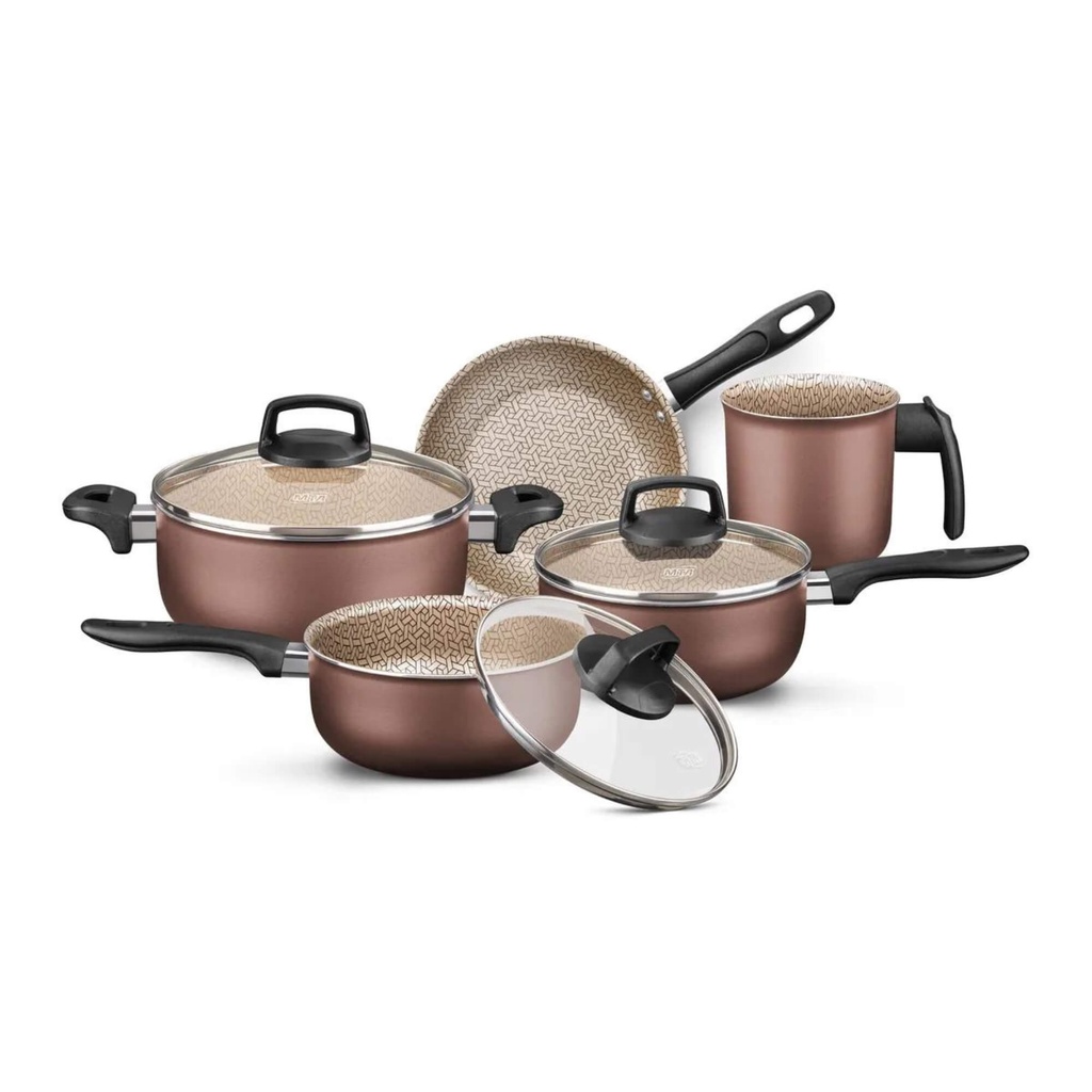 Jogo de Panelas em Alumínio 5 Peças Frigideira, Caçarola, Fervedor Florence Supra Marrom MTA - 5667