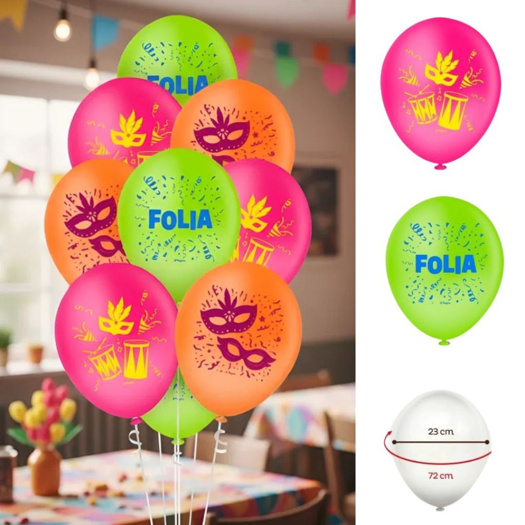 25~100 BALÃO CARNAVAL FOLIA REDONDO 9 pol. ( REGINA )