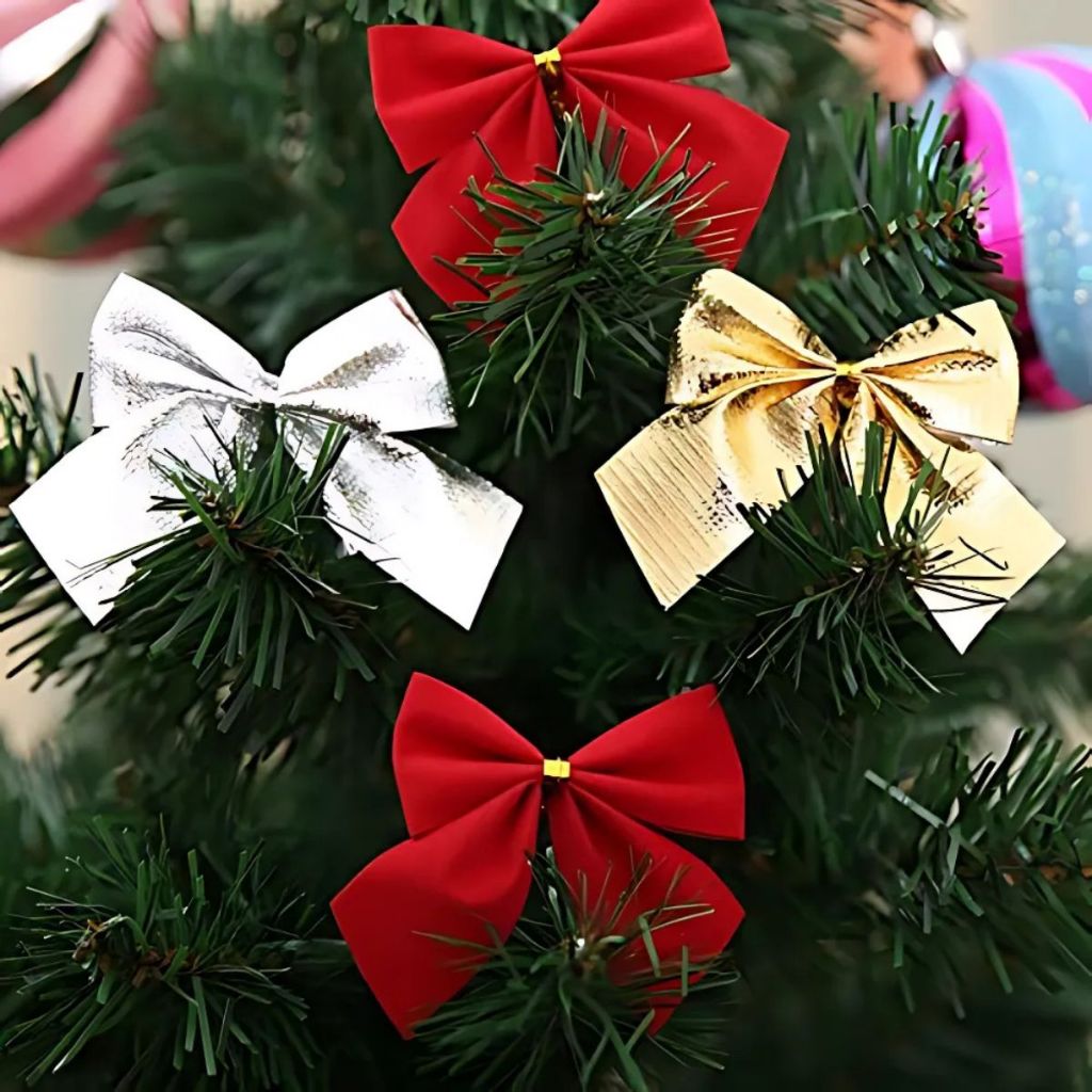 Laços Natalino Decoração de Natal Arvore Enfeite Lacinhos Vermelho Dourado Natal Laço VMP