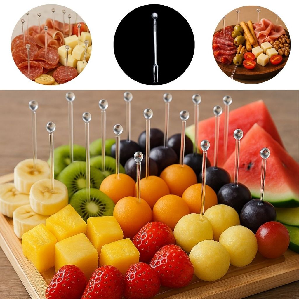 200 ESPETINHO PARA PETISCO APERITIVOS MINI GARFINHOS CRISTAL PLASTILANIA