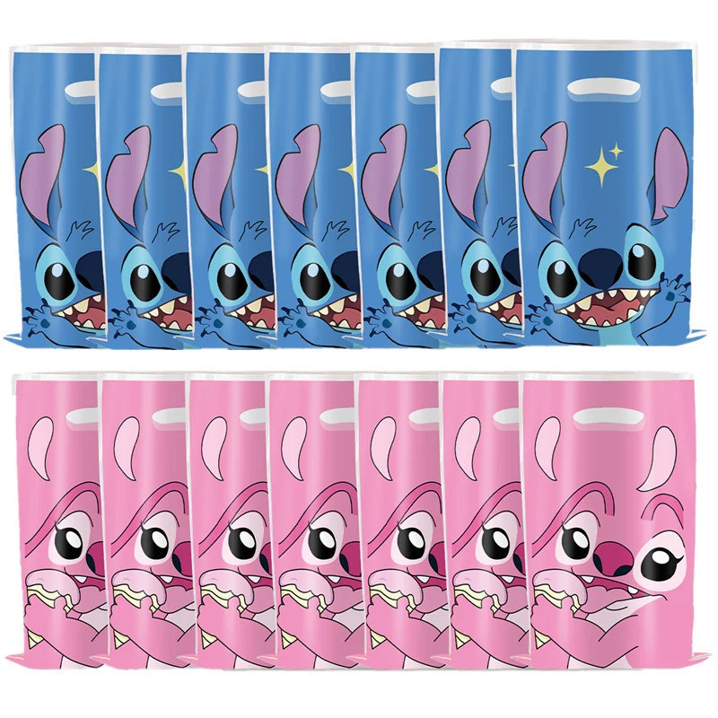 10/30 Pcs Sacolas de Presente de Plástico Disney Rosa Azul Lilo & Stitch Suprimentos para Festa Meninos Meninas Aniversá