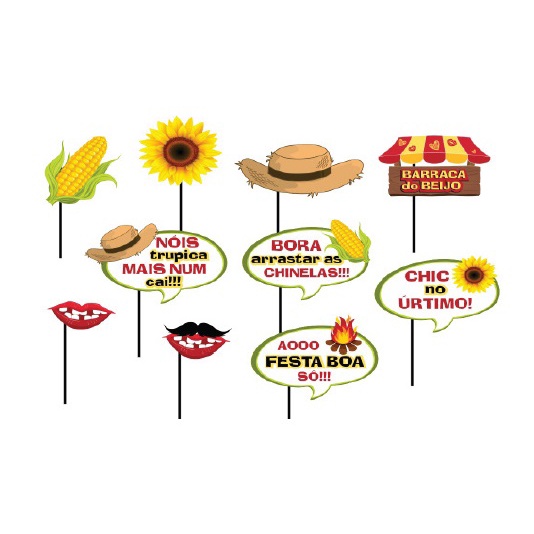 KIT 10 PLAQUINHAS DIVERTIDAS SELFIE FESTA JUNINA ARRAIAL (COD 54.19)