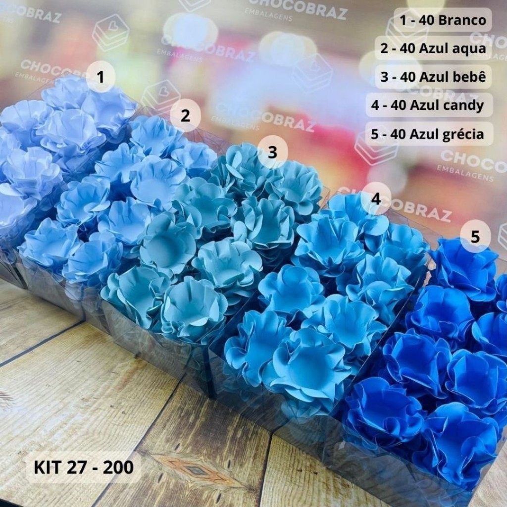 KIT 200 Forminhas De Doces Festa AZUL BEBE + AZUL AQUA + BRANCO + AZUL CANDY + AZUL GRÉCIA