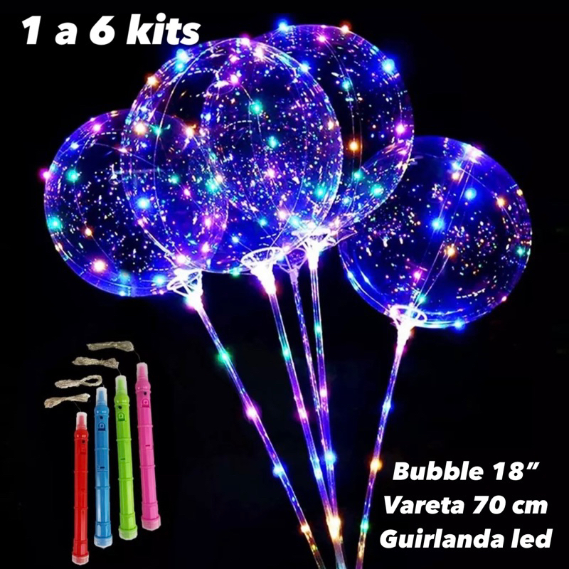 KIT Balão Com Led + Vareta Bubble 18 Polegadas + BASTÃO pega Bubble Redondo