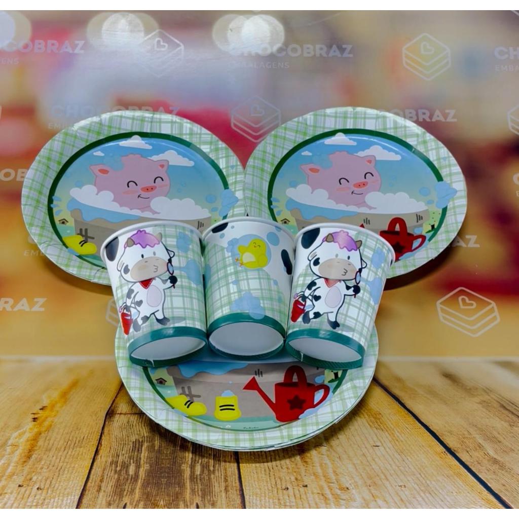 Kit Festa FAZENDINHA 16 Pratos + 16 Copos Descartável 200 Ml Papel - FESTCOLOR em Oferta na Shopee Shopee