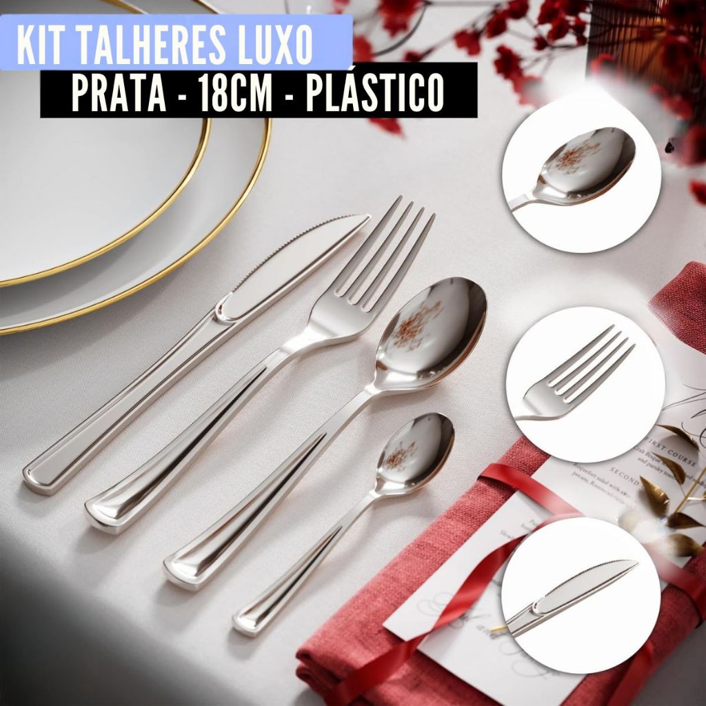 Talheres Prata Luxo Garfo Faca Colher Festa Casamento Colher Sobremesa Descartável 12 un cada em Oferta na Shopee Shopee