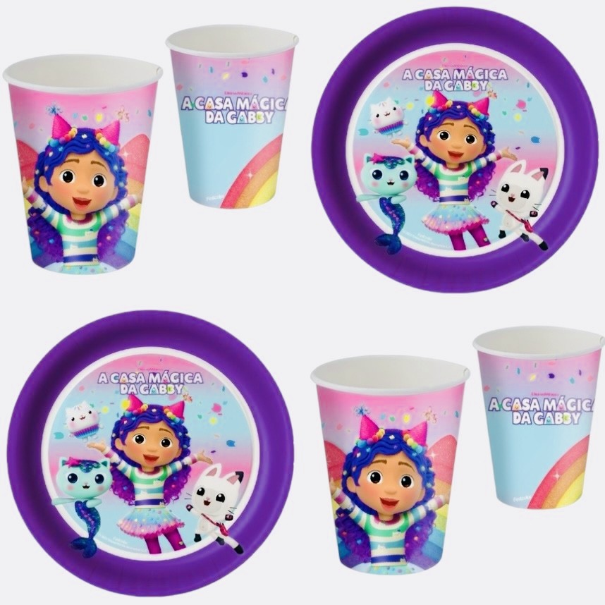 Kit Festa CASA MAGICA DA GABBY  8 Pratos + 8 Copos Descartável 200 Ml Papel - FESTCOLOR em Oferta na Shopee Shopee
