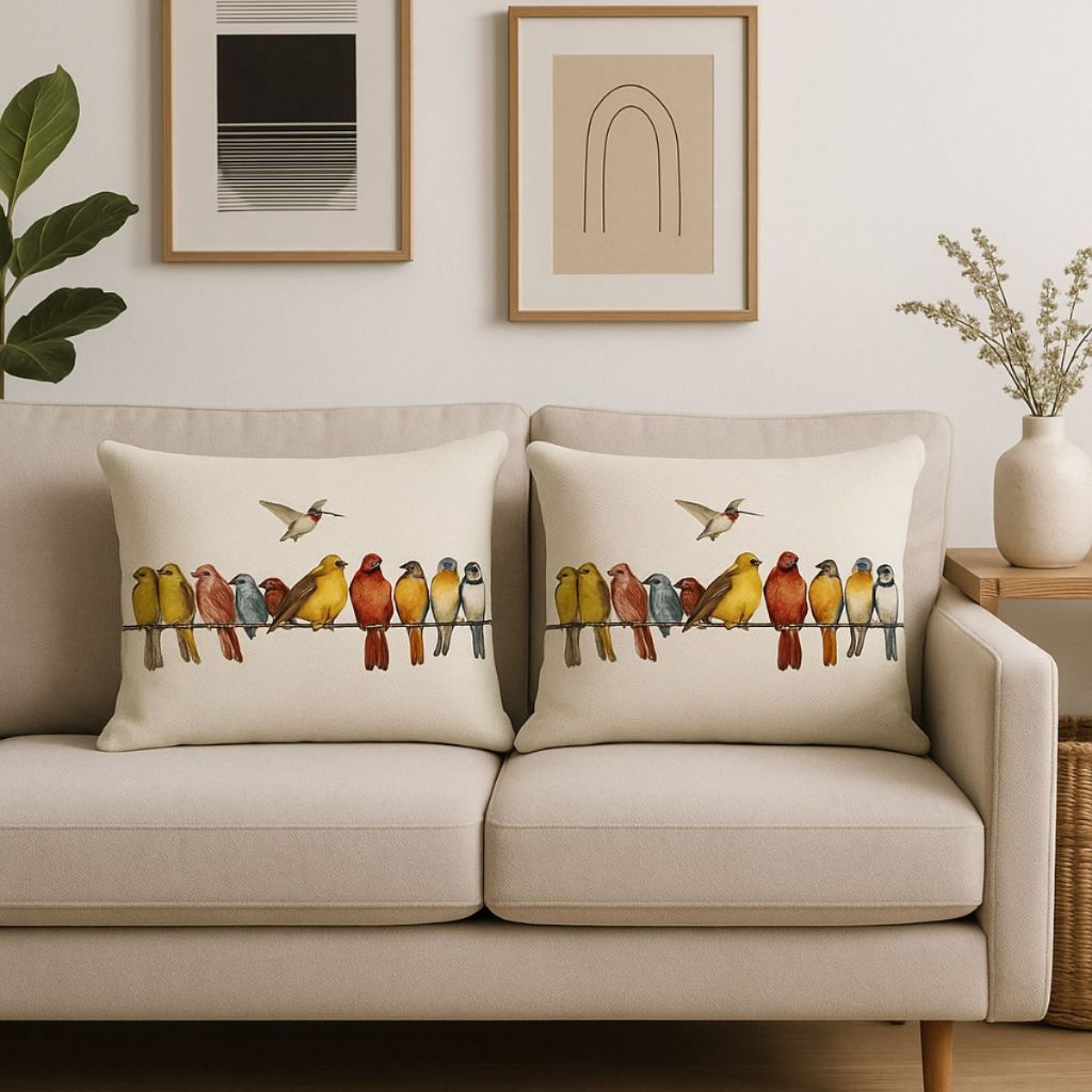 Kit 2 Capas de Almofadas Retangular Linho Passarinhos Coloridos no Fio Decoração de sofá cama 30x50cm em Oferta na Shopee Shopee