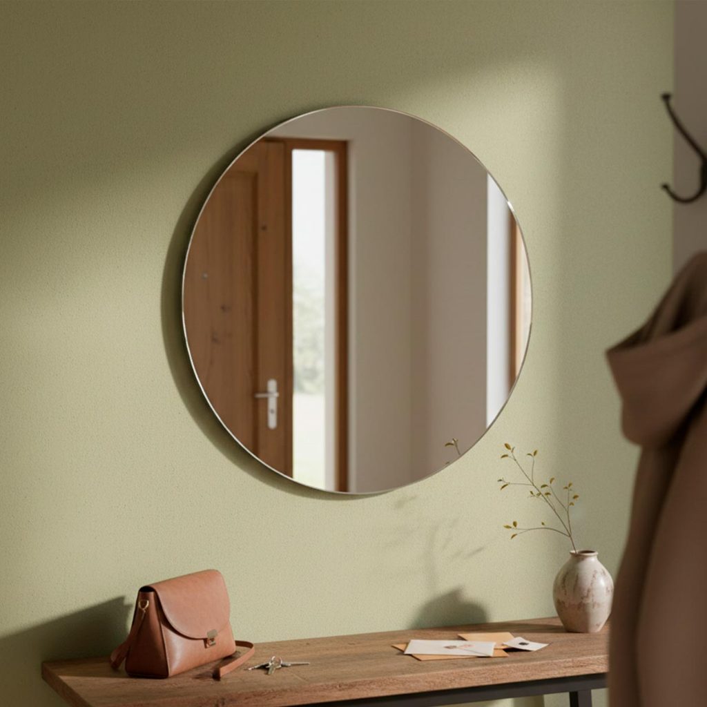 Espelho Redondo Lapidado 50cm com Fita Dupla Face para Uso em Sala Quarto Banheiro Escritório