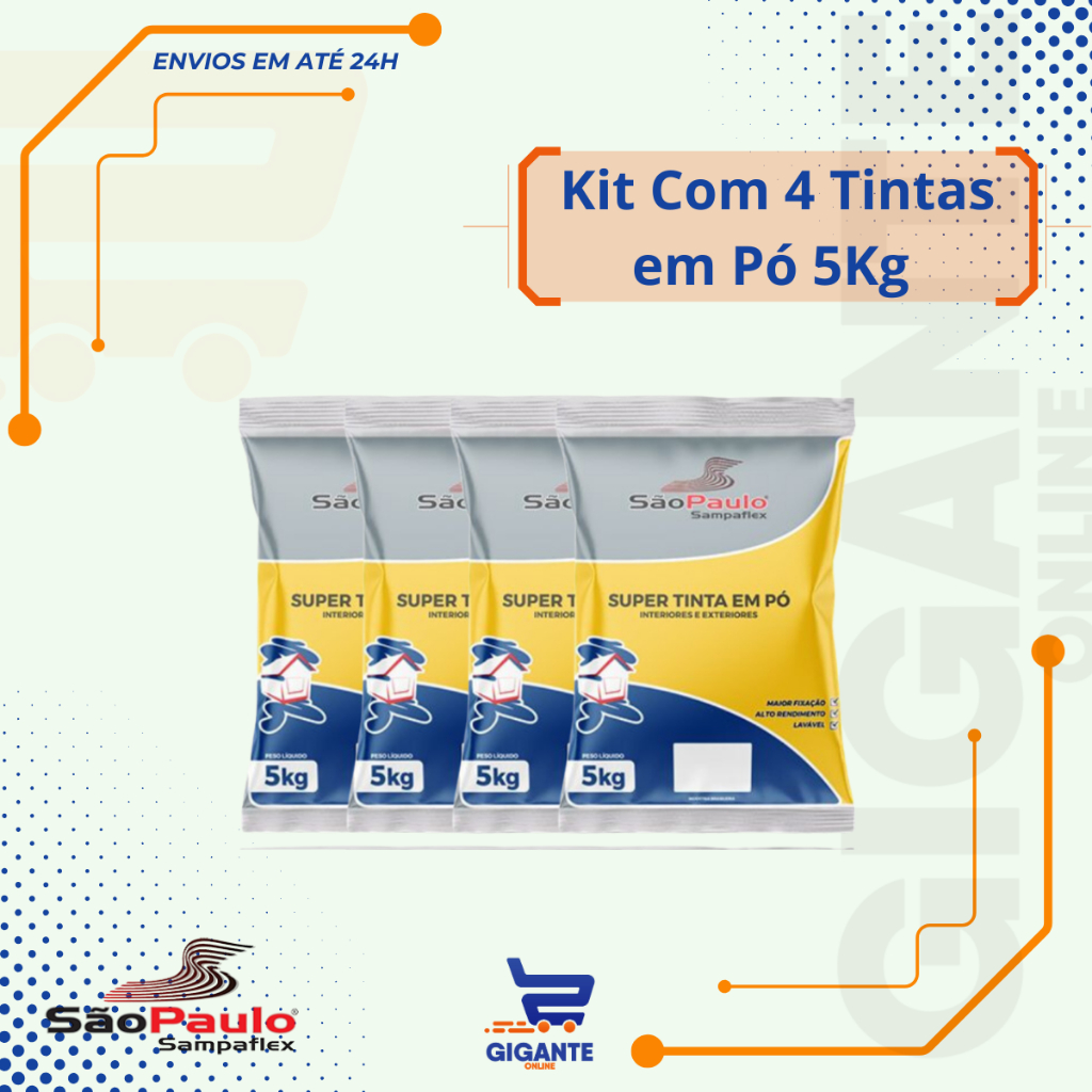 Kit 4 ou 5 Tinta em Pó Super Para Parede Cor Branca Lavável 5 Kg Sampaflex em Oferta na Shopee Shopee