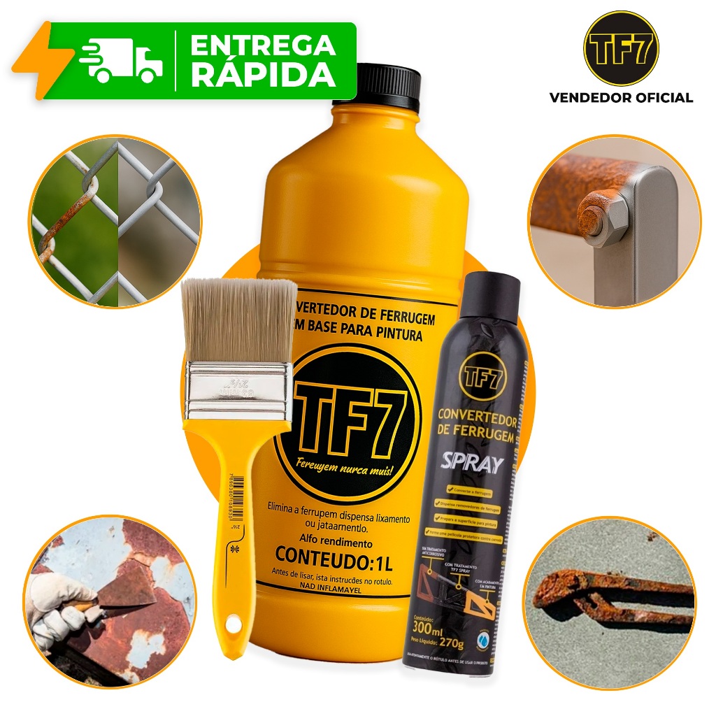 TF7 + Pincel Fundo Convertedor de Ferrugem E Base Líquida Original Limpa Prime Tubo 1 Litro 300ml em Oferta na Shopee Shopee