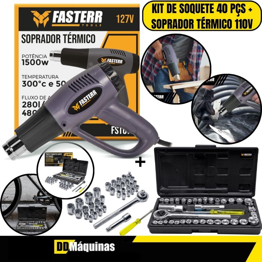 Kit Soprador Termico 1500W 110V FST078BR + Jogo De Soquete 40 Peças FST003 - Fasterr em Oferta na Shopee Shopee