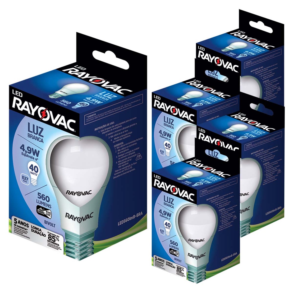Lampada LED 4,9W Luz Branca 6500K Rayovac 5 caixas Bulbo Soquete E27 Luz Fria