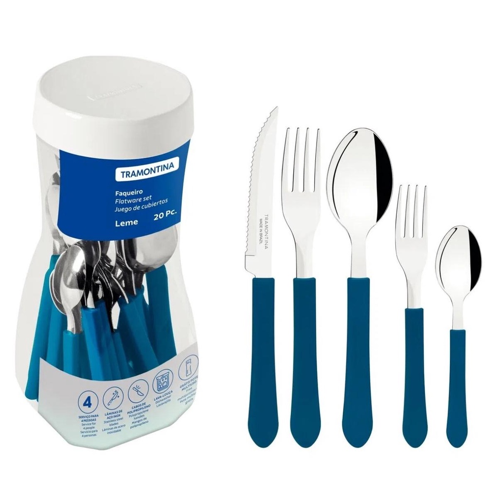 Faqueiro Tramontina Leme com Lâminas em Aço Inox e Cabos de Polipropileno Azul 20 Peças - 23198918