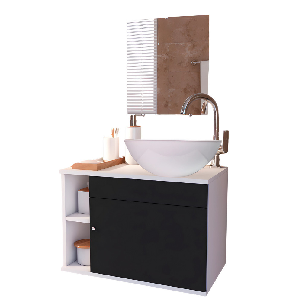 Gabinete para Banheiro 60cm Suspenso com Cuba Espelho e Nicho Armário Lavabo - Brovália