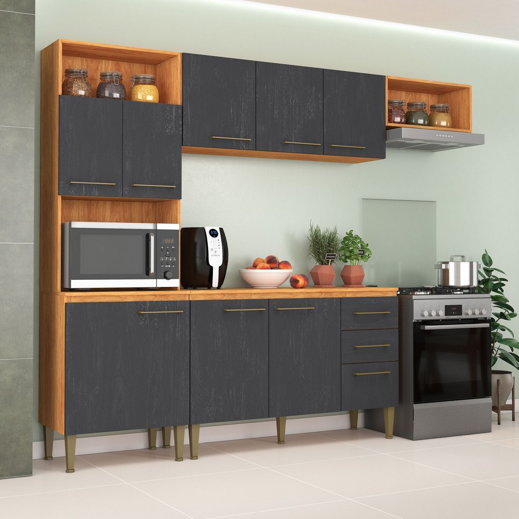 Armário de Cozinha Completa Montesa 6 Portas 2 Gavetas Freijó / Grafite