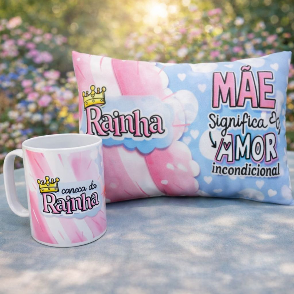 Kit Presente Dia das Mães Almofada + Caneca Várias Estampas Lembrancinha Surpresa Cesta Urso Almofad