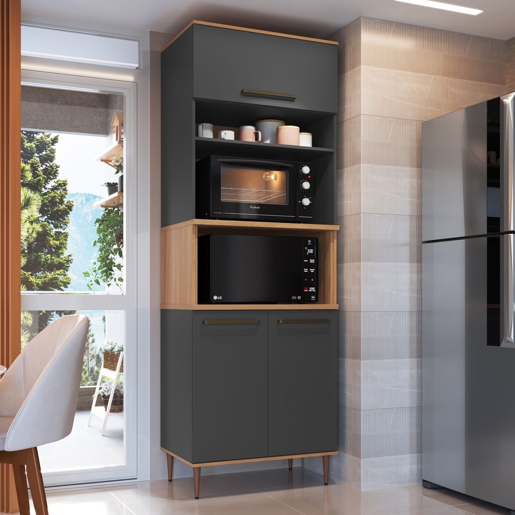 Armário Torre Quente 0,80m 2 Fornos 3 Portas Isabelle Freijó/Grafite em Oferta na Shopee Shopee