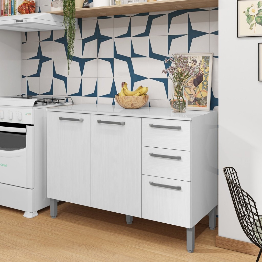 Armário de Cozinha Modulada Compacta Fidelitá Viena 2 Peças 120cm 5 Portas 3 Gavetas Com Tampo Branco em Oferta na Shopee Shopee
