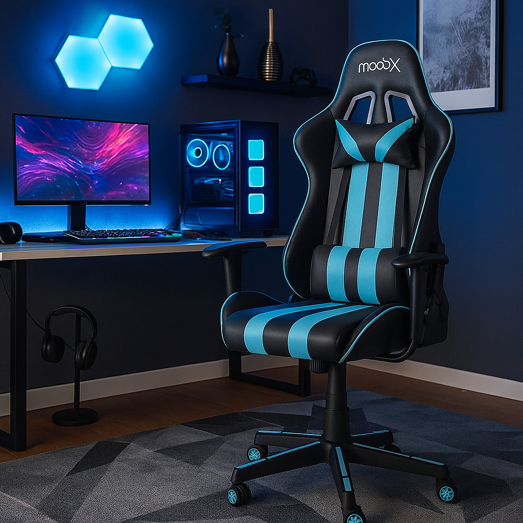 Cadeira Moob Pc Gamer Nitro Reclinável Giratória Almofadas P/ Lombar Pescoço e Regulagem Preto/Azul em Oferta na Shopee Shopee