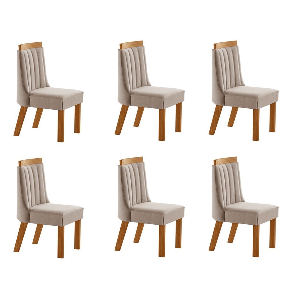 Cadeiras Kit 6 Cadeiras Lisboa Cinamomo/Linho Bege  - Lj Móveis em Oferta na Shopee Shopee