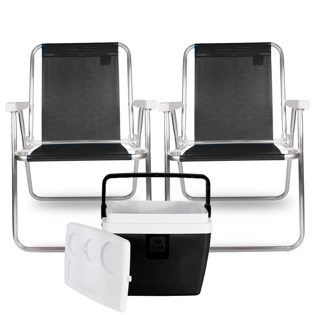 2x Cadeiras de Praia Alta Lazy Alumínio Suporta 110kg Preta + Caixa Térmica 12L Preta/Branca em Oferta na Shopee Shopee
