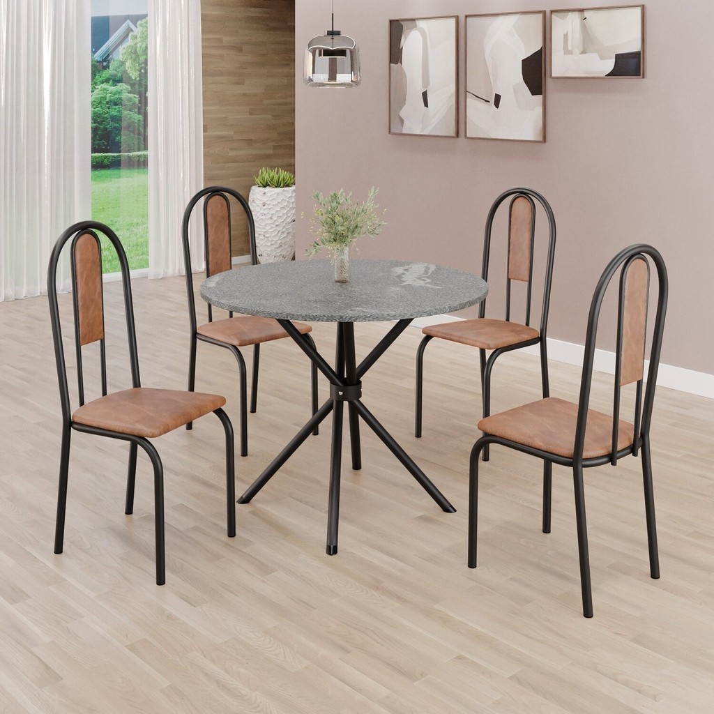Conjunto Sala de Jantar Mesa Redonda 70cm Tampo Granito Topázio 4 Cadeiras Linda Yescasa Marrom/Preto em Oferta na Shopee Shopee