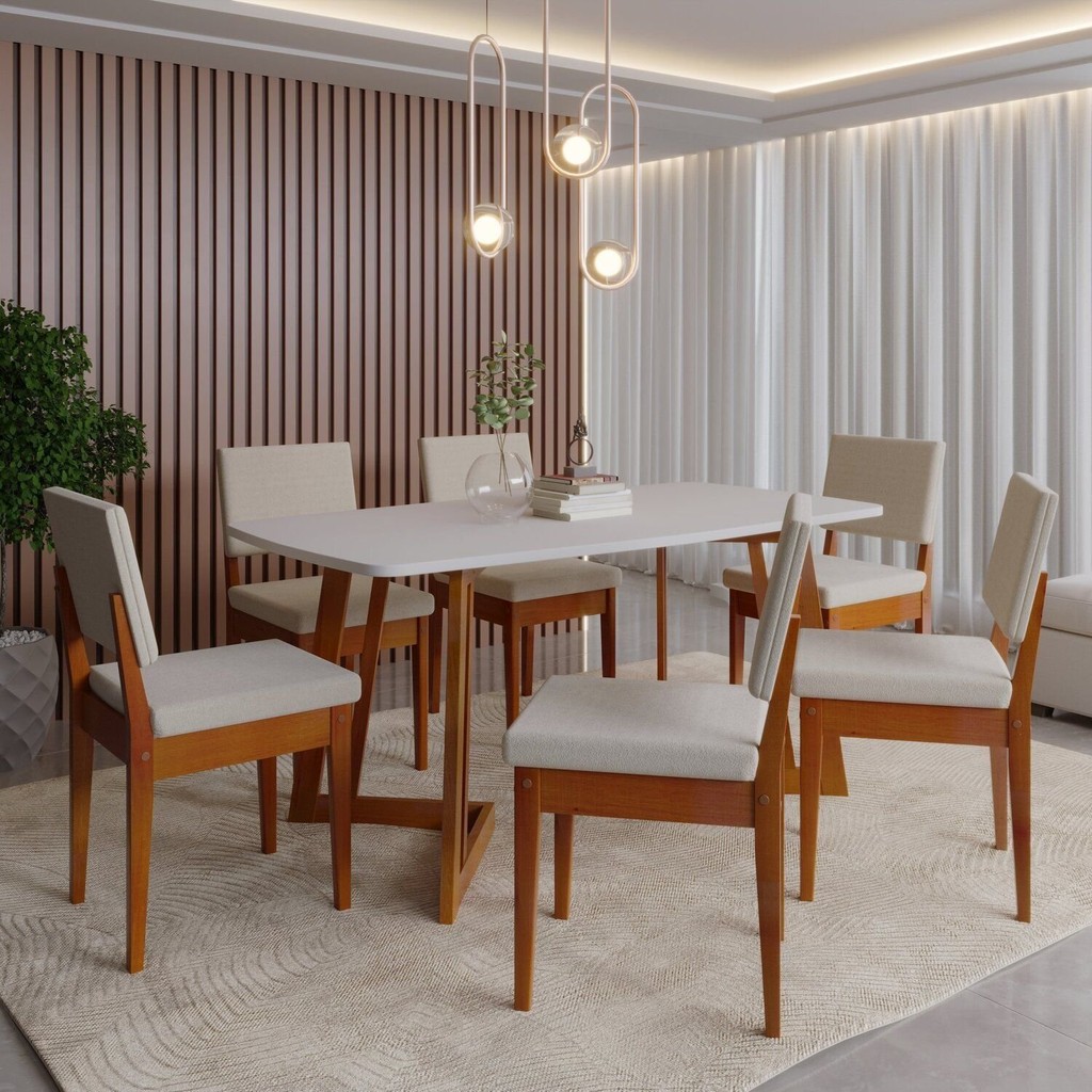 Conjunto Sala de Jantar Madesa Analu Mesa Tampo de Madeira com 6 Cadeiras em Oferta na Shopee Shopee