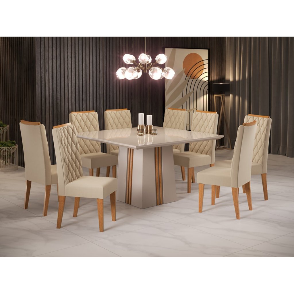 Conjunto Sala de Jantar Mesa Bela com 8 Cadeiras Iza Off White/Mel/Bege em Oferta na Shopee Shopee