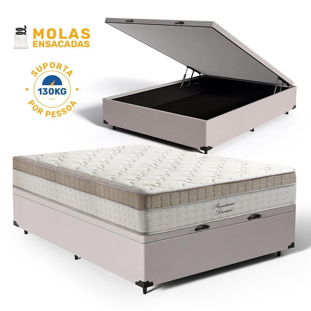 Cama Box Baú com Colchão de Molas Ensacadas Pillow In Anjos Premium Dream Casal 138cm em Oferta na Shopee Shopee