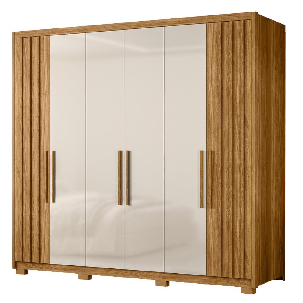 Guarda Roupas Casal Detalhe Ripado 6 Portas 4 Gavetas Roma Madeirado/Off White