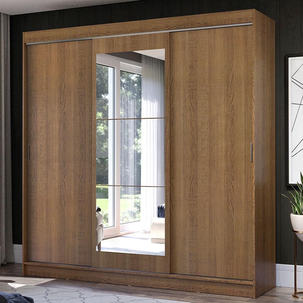 Guarda-Roupa Casal Madesa Istambul 3 Portas de Correr com Espelho 3 Gavetas - Rustic