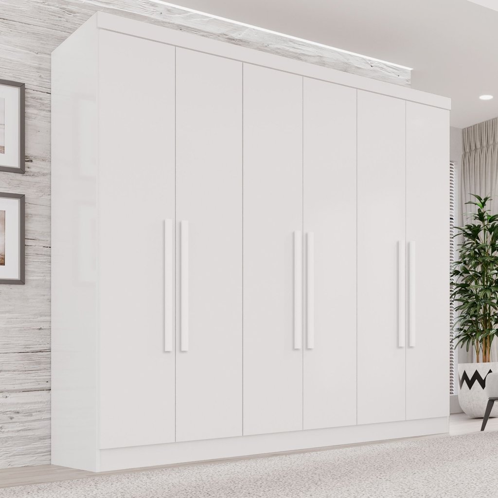 Guarda-Roupa Casal 6 Portas 2 Gavetas França Branco