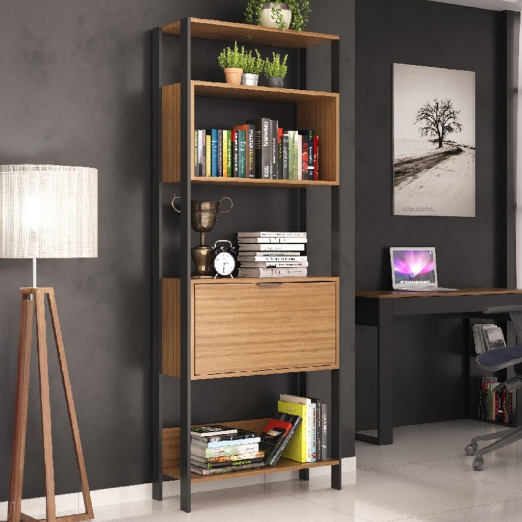 Estante para Livros 3000 1 Porta Montana/Preto - Quiditá Móveis