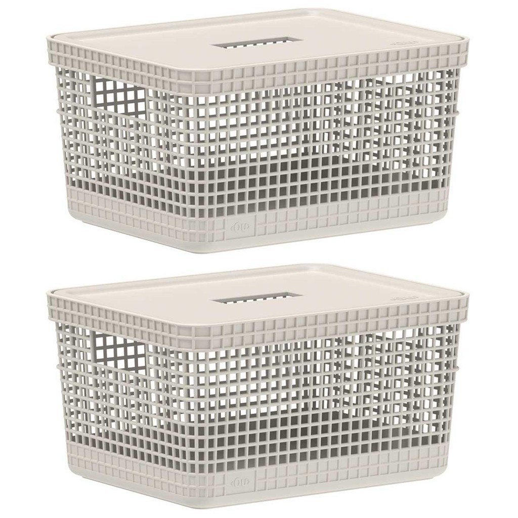Kit 2 Cesto 8L Organizador Multiuso OU Grid Bege com Tampa em Oferta na Shopee Shopee