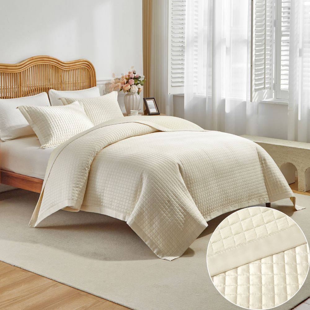 Kit Colcha Casal 3 Peças Itália 150 Fios Grid Dupla Face em Oferta na Shopee Shopee