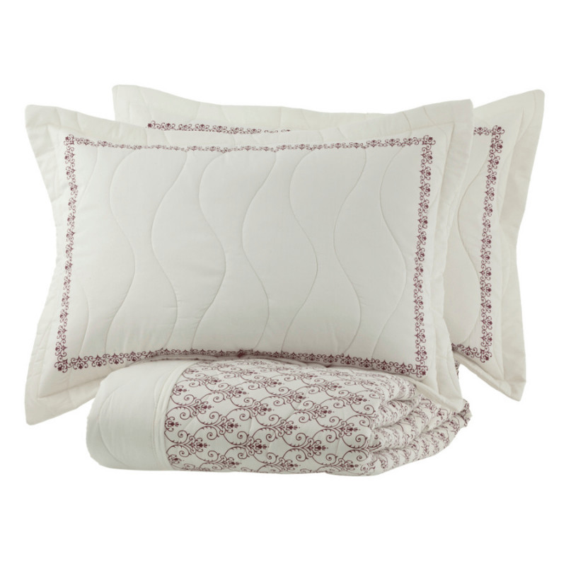 Kit Cobre Leito Colcha 3 Peças Bordado King Size Luxuoso Percal 200 Fios Com Porta Travesseiro Ágata em Oferta na Shopee Shopee