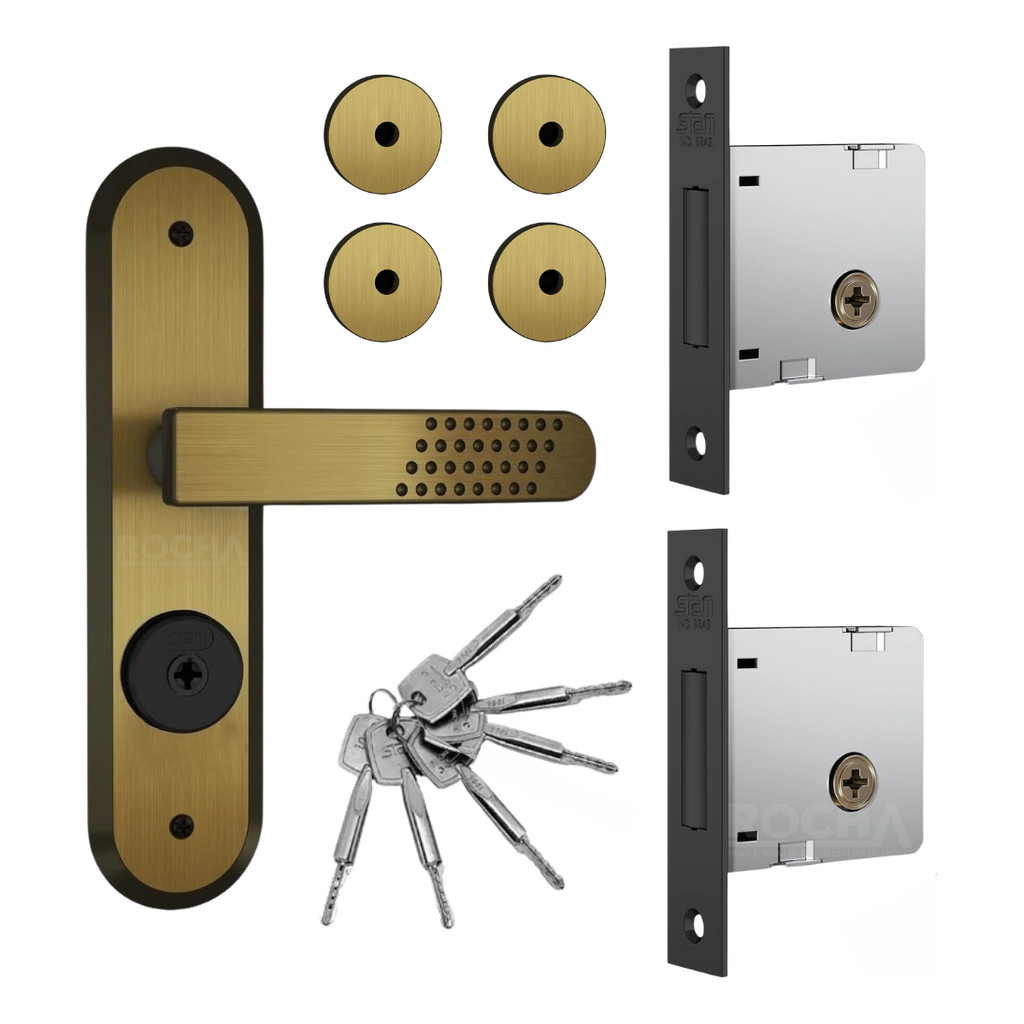 Kit Segurança Fechadura + 2 travas + 6 Chaves Tetra 1800/21 Stam Oxidado