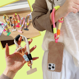 Correia Curta Do Telefone Móvel Coreia Universal Trançado Pendurado Corrente Anel Cabo Com Remendo Alça De Pulso Celular