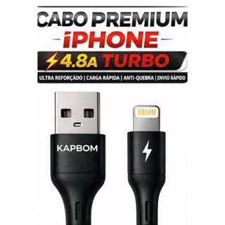 Cabo Premium iPhone Lightning USB 4.8A Turbo Reforçado Anti-quebra Não Embaraça Resistente