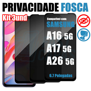 Kit 3 Película Privacidade Fosca p/ Samsung Galaxy A16 A17 A26 5G 3D 9D Privativa Anti Espião Matte