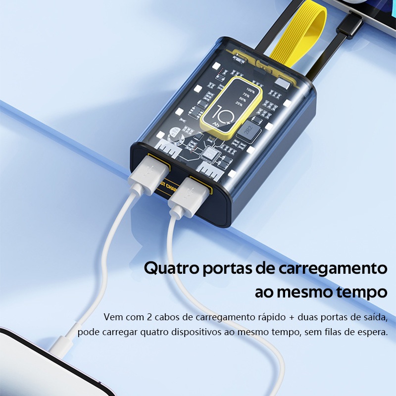 H'maston YD67 Carregador Power Bank Portátil 4 Cabos 10000mAh com indicador LED inteligente em Oferta na Shopee Shopee