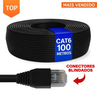 Cabo de REDE CAT6 PRETO 100 Metros Alta Velocidade Notebook - PS4- PS5 - XBOX - TV BOX DVR Camera