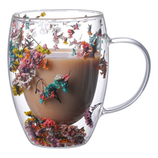 Copo De Vidro De Parede Dupla Com Flor Seca 4 Unid