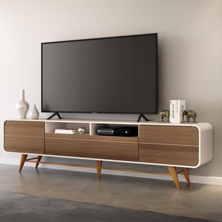 Bancada Europa Pés em Madeira para TV até 85 Polegadas Off White/Castanho G26 - Gran Belo